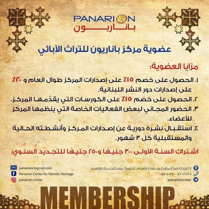إعلان خدمة الأيام الدراسيةيناير 23, 2024إعلان كورس التعالم الأخروية (الإسخاتولوجي)فبراير 1, 2024 Show all عضوية مركز باناريون للتراث الآبائي Related postsبدء الكورس المتخصص الكنيسة الصغيرةRead more Comments are closed.